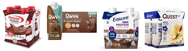 Premier Protein, Owyn Protein Shake, Ensure Max Protein, and Quest Protein. Available at most pharmacies, Sam's Club, or Costco.